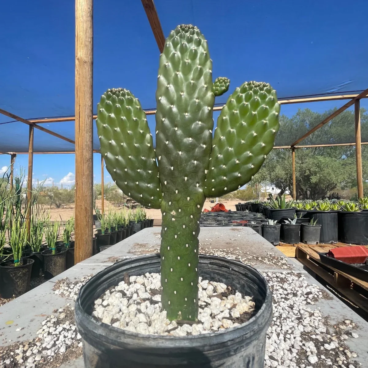 Add a touch of tropical flair to your collection with the Cowboy Prickly Pear, also known as the “Roadkill Cactus” for its unique flat, wide body shape—though we prefer the name “Cowboy” for the way its arm pads grow symmetrically on either side, like a cowboy’s stance.