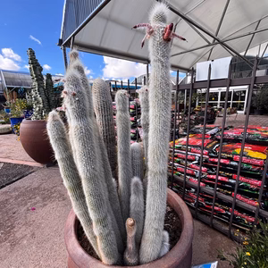 Add an element of elegance and resilience to your garden with the Silver Torch Cactus, also known as the “Snow Pole” cactus or “Wooly Torch” cactus. Native to the high deserts and foothills of Bolivia and Argentina, this impressive cactus features tall, slender columns that grow up to 6-8 feet. Its dense, shimmering silver spines give it a distinctive, woolly appearance, while its reddish-pink flowers in late spring to early summer add a bold, colorful contrast.